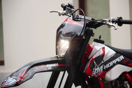 ZM Hopper отлично справляется с поездками по бездорожью и пересеченной местности, а его вес и высота по седлу делают его комфортабельным для райдеров среднего и не высокого роста. Версия мотоцикла на колесных дисках радиусом 19 и 16 выглядит и едет, как полноразмерный мотоцикл, но по эргономике подходит райдерам ростом до 165см.