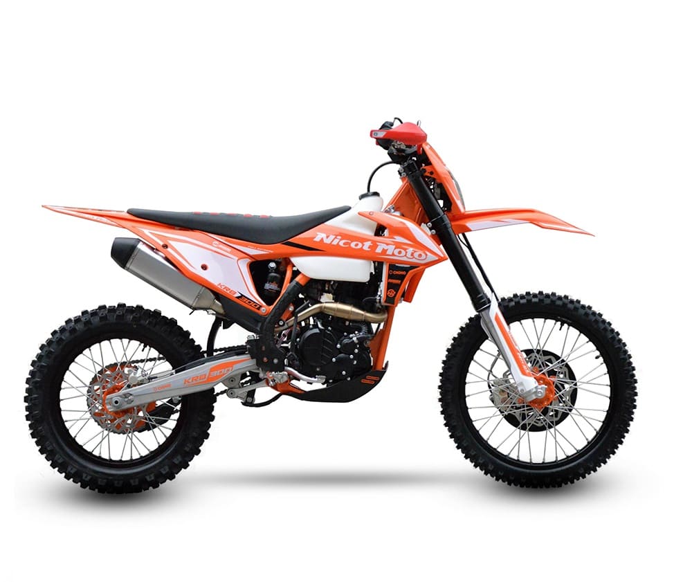 NICOT KF300S — это мотоцикл для тех, кто ценит мощь и свободу выбора. Его характер чувствуется с первых метров: динамичный разгон, устойчивость на трассе и уверенное поведение на бездорожье. Универсальность модели делает её отличным вариантом как для городских поездок, так и для активного отдыха за пределами асфальта.