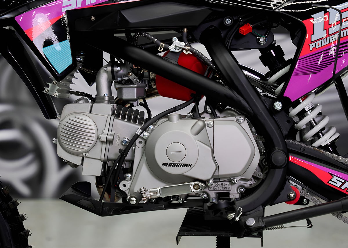 Охлаждение SHARMAX PowerMax 190 MIAMI оборудован системой воздушного охлаждения. Надёжность и простота проверенной технологии не дадут байку перегреться даже на гонках в пустыне.