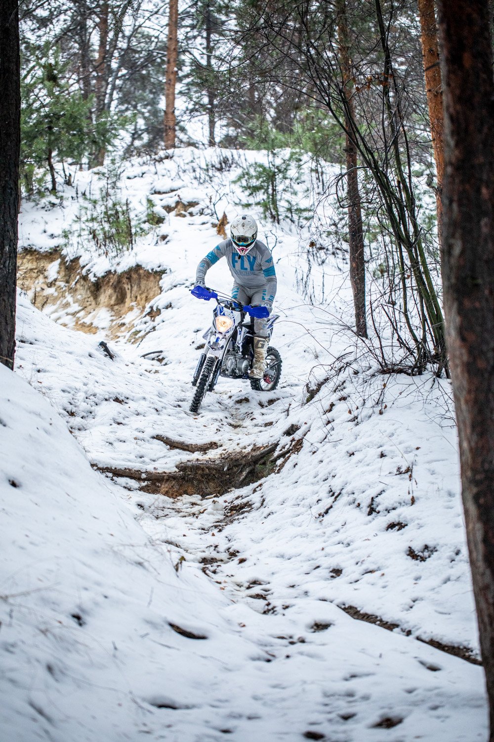 Вилка перевёрнутого типа (диаметр стакана составляет 45-48 мм, диаметр штока амортизатора — 33 мм) длиной 710 мм имеет жёсткую конструкцию и отличается эффективной управляемостью. Такой питбайк отличается более продуктивной обратной связью, чем мотоцикл с телескопической вилкой.