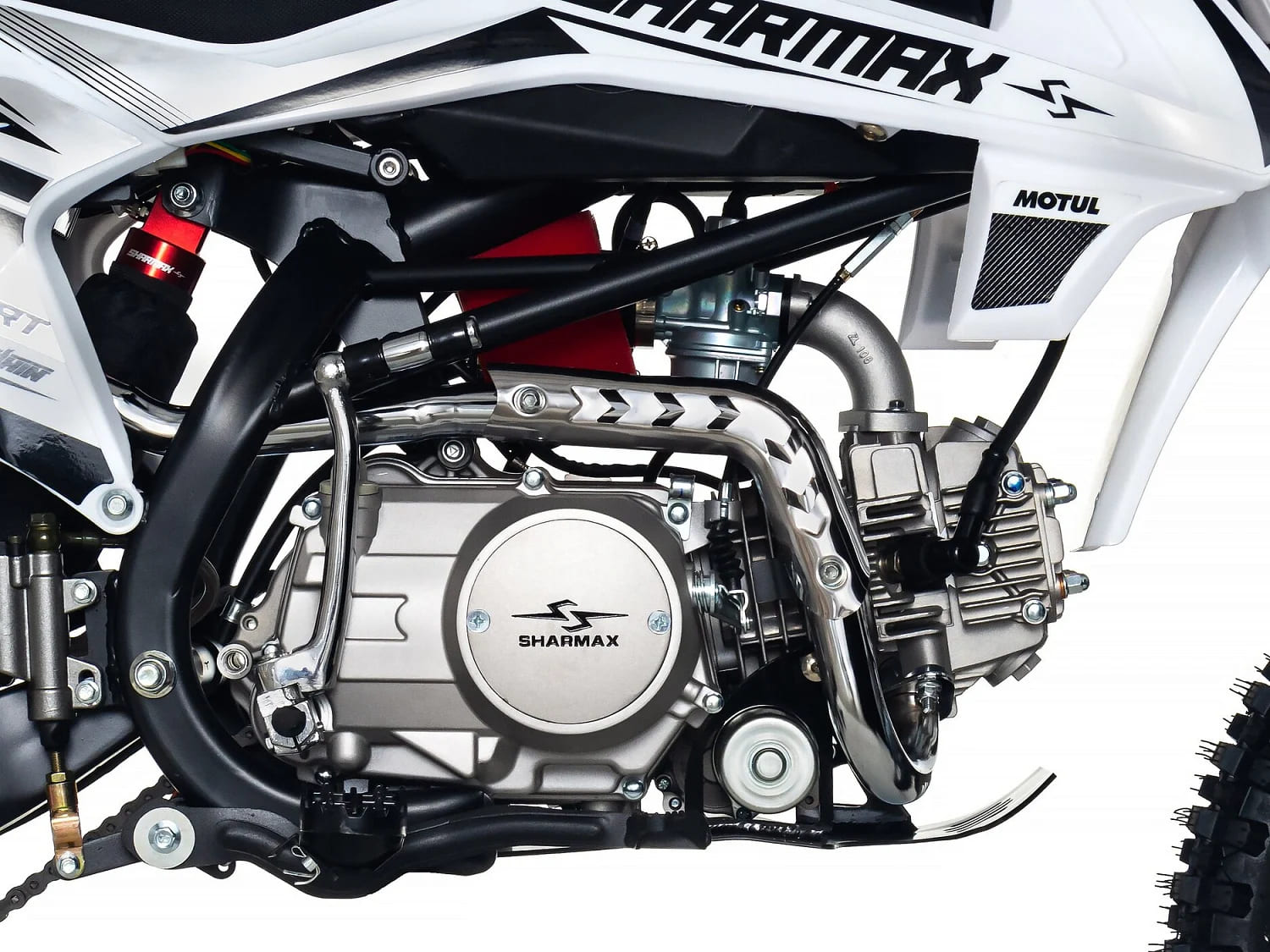 Sharmax Sport 145 — это воплощение спортивного духа и стремление к победе. Его дизайн с чёткими линиями и яркой цветовой гаммой делает питбайк уникальным и запоминающимся.