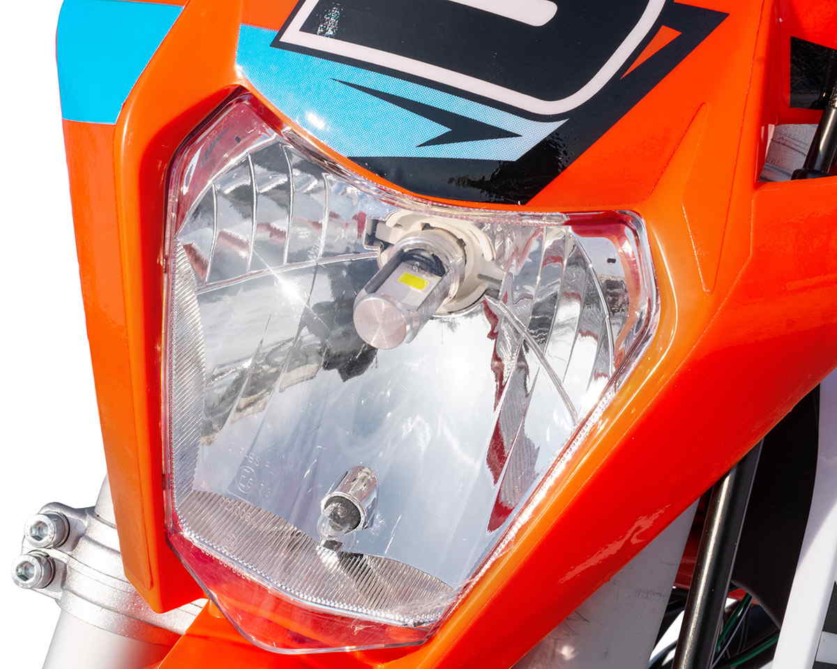 Питбайк построен на новой усиленной хребтовой раме от Американской компании PitsterPro, которая отличается своей прочностью и выверенной геометрией. 80% рамы сварены с помощью роботов. Все электрические соединения собраны на водонепроницаемых разъёмах. На питбайк установлен мягкий двухцветный пластик KTM 65 2019г.