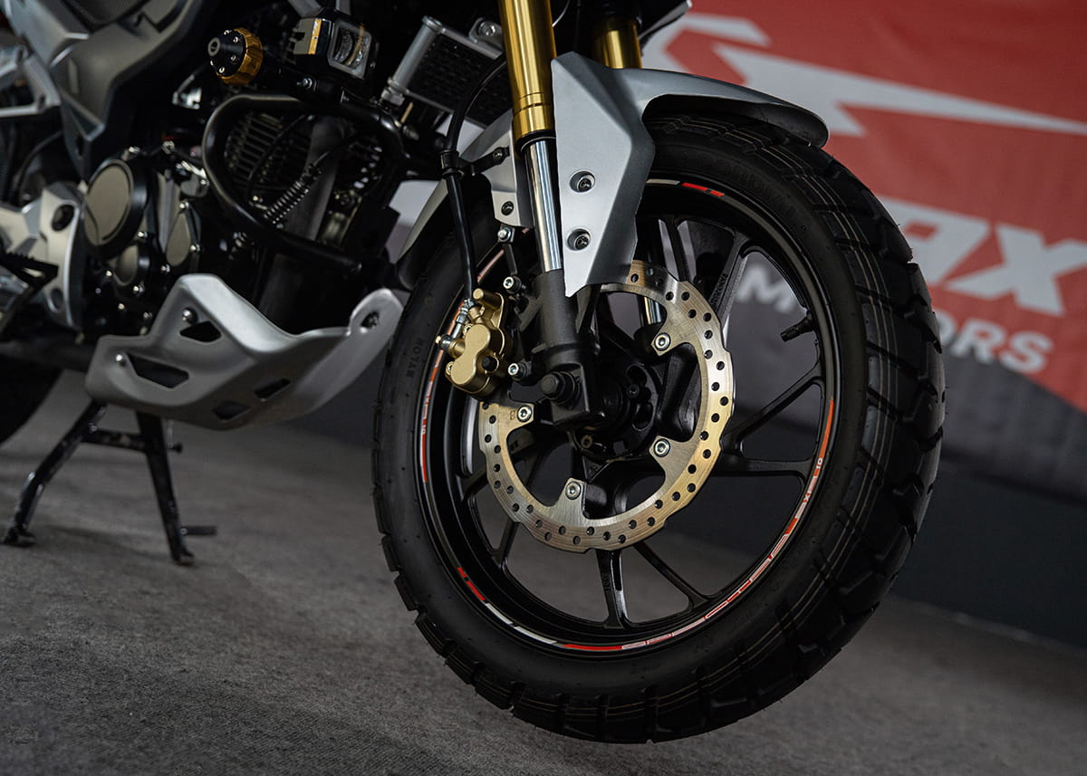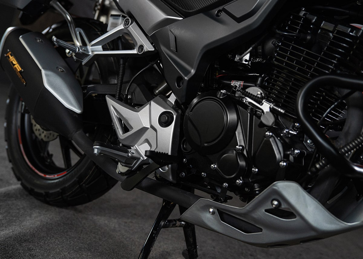 Дизайн мотоцикла впечатляет — несмотря на небольшую кубатуру, его передняя часть выглядит массивной и органичной. Установленные кофры словно приглашают отправиться в путешествие. Комфорт и удобство гарантированы — на этом мотоцикле поездка будет приятной и увлекательной. Ветрозащита и защита рук, которые идут в комплекте, добавляют комфорта в дальней дороге. Защита картера и и прочные дуги позволяют использовать мотоцикл на бездорожье в рамках его максимальных возможностей.