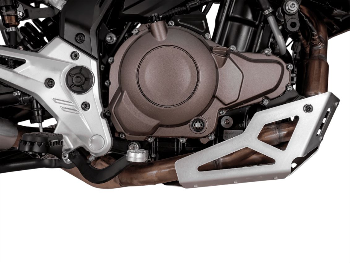 Двухцилиндровый двигатель объёмом 554 куб. см с жидкостным охлаждением, развивает мощность 56 л. с. при 8250 об/мин. Этот силовой агрегат отлично покажет себя в дальних поездках и порадует пользователей быстрым набором скорости.
