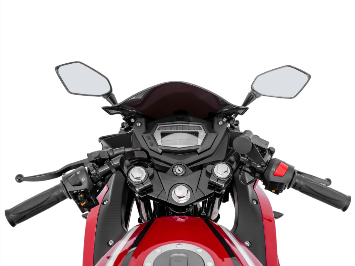 - Продвинутая оптика: LED двухлинзовая фара обеспечивает отличное освещение дороги и придаёт мотоциклу стильный вид.