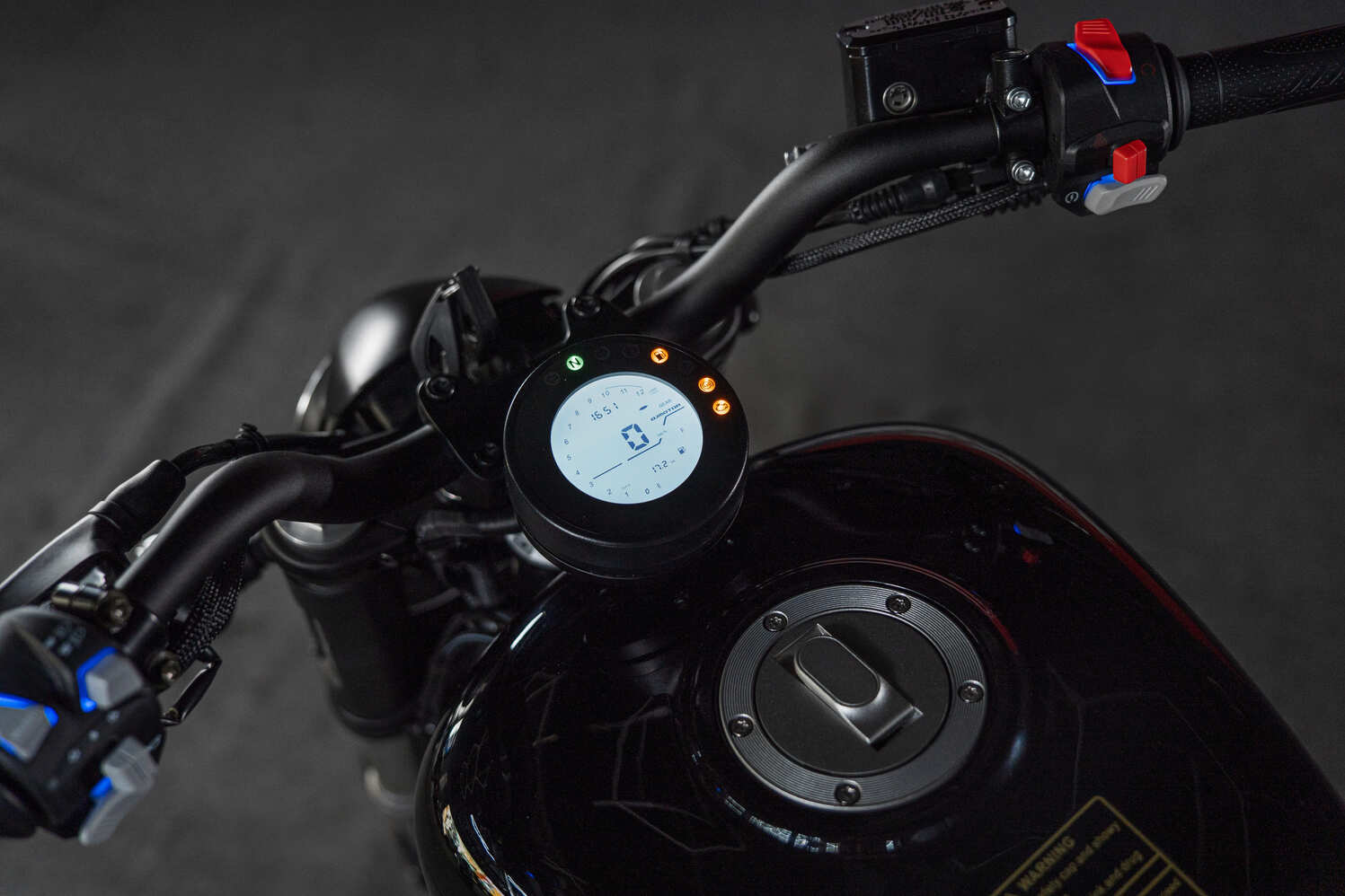 Панель приборов над рулевым колесом, состоит из легко читаемого ЖК-экрана круглой формы, на котором отображаются все необходимые показания и сочетаются традиции с современными технологиями. Панель отображает текущую скорость, обороты, счётчик пробега, ёмкость бака, время в пути и включает в себя индикатор положения передачи.