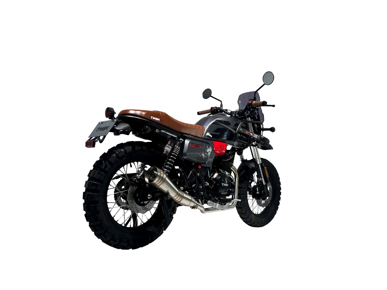 TMBK Fahrenheit – это дорожный мотоцикл в стиле скрэмблер/классик, оснащенный 250-кубовым 4-тактным бензиновым двигателем.