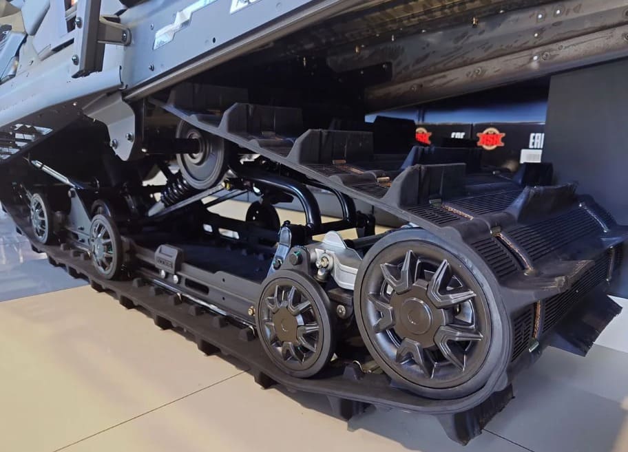 Гусеницы снегохода отличаются четким сцеплением со снегом и обеспечивают безопасность райдеру. Особенно это важно, когда речь идет о подъемах по заснеженным тропам. На снегоходе установлена: