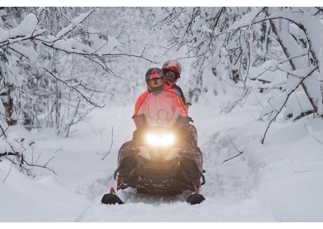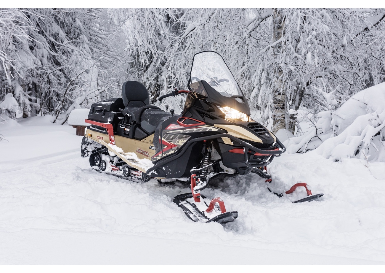 Гусеница шириной 60 см с 38 мм зацепом обеспечит отличную проходимость в глубоком снегу, высокое стекло защит вас от ветра, фаркоп и пониженный режим КПП помогут при буксировке прицепа, удобное пассажирское сиденье-модуляр обеспечит комфорт вашего пассажира во время поездки.
