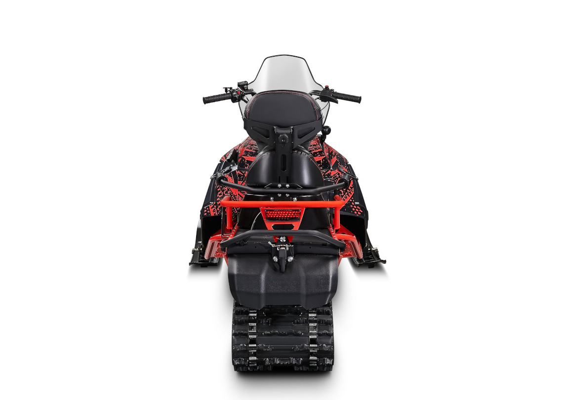 В снегоходе IRBIS SF200SL SuperLong произведено множество значимых изменений. Подседельный кофр стал больше, что позволяет перевозить больше вещей. Теперь сиденье двухместное, удлиненное и эргономичной формы. Оно открывается на шарнирных петлях и фиксируется ремнем-липучкой. Для комфорта пассажира предусмотрена регулируемая спинка и ручки. Задний бампер стал съемным, благодаря чему увеличился угол наклона. На багажнике появилась платформа для крепления канистры или номерного знака. Передний бампер модифицирован для лучшей защиты переднего пластика. Багажник и тоннель гусеничного блока также стали длиннее. Гусеница увеличена на 40,4 см и теперь имеет длину 3434 мм с 68 окнами, при этом используется продукция завода Composit. Угол атаки задней пятки гусеничного блока изменился, что положительно сказалось на проходимости при движении задним ходом. В конструкции установлен новый передний амортизатор и рычаг в гусеничном блоке. Подножки получили обновленную форму зацепа, а также добавлен резиновый брызговик.