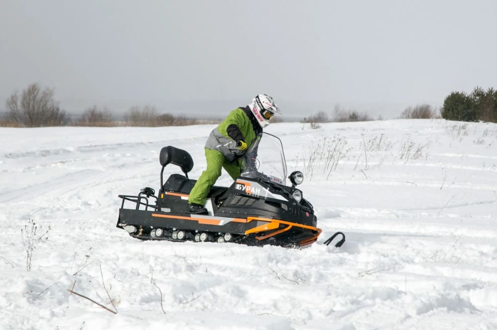 «Буран Лидер» усовершенствован с учетом предложений и ожиданий постоянных владельцев. Одно из ключевых изменений касается повышения прочности лыжи, управляемости и продления ресурса снегохода за счет установки стандартных твердосплавных подрезов СХТ «Тайга». При длительной эксплуатации не увеличивается радиус разворота снегохода, не происходит износа кромки лыжи. «Буран Лидер» оснащен автоматическим натяжителем цепи на коробке реверса, что позволяет экономить время на обслуживание.