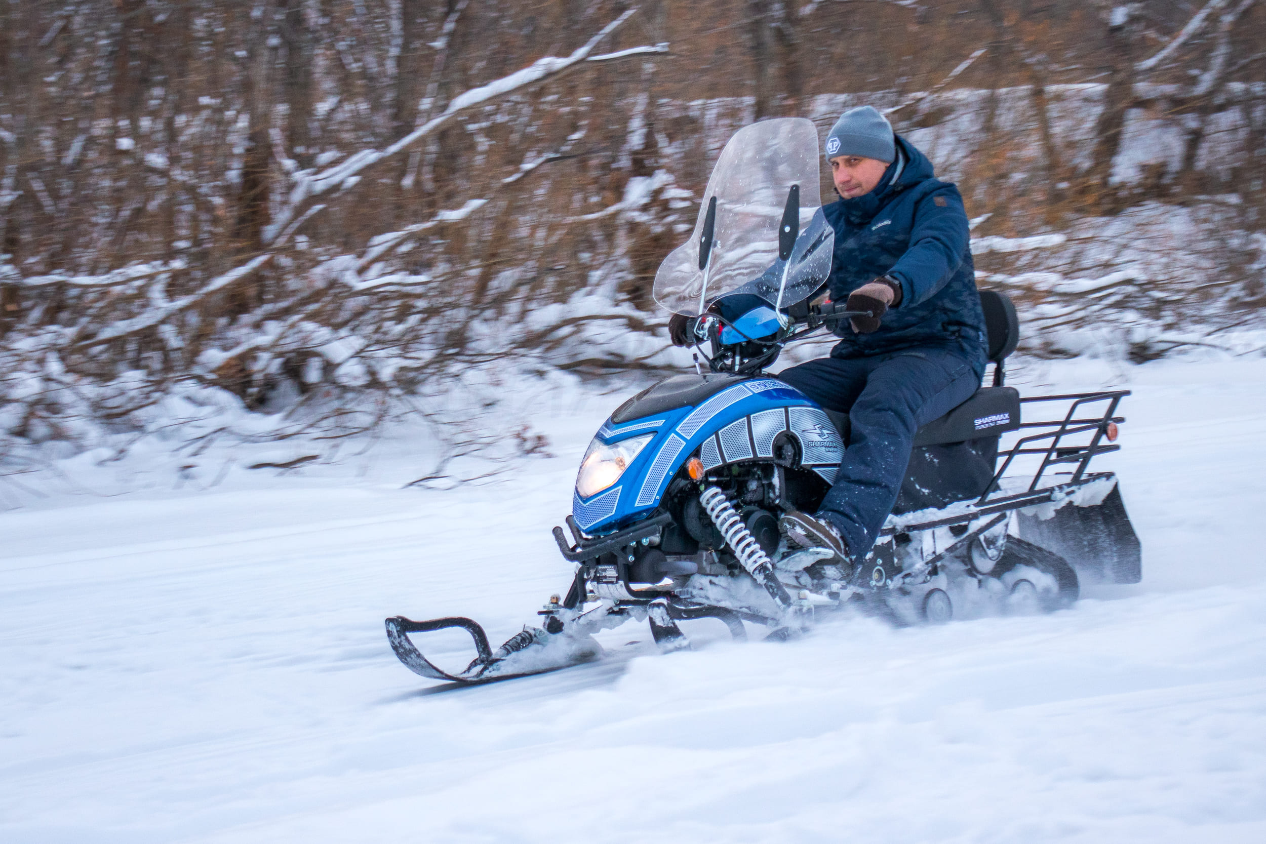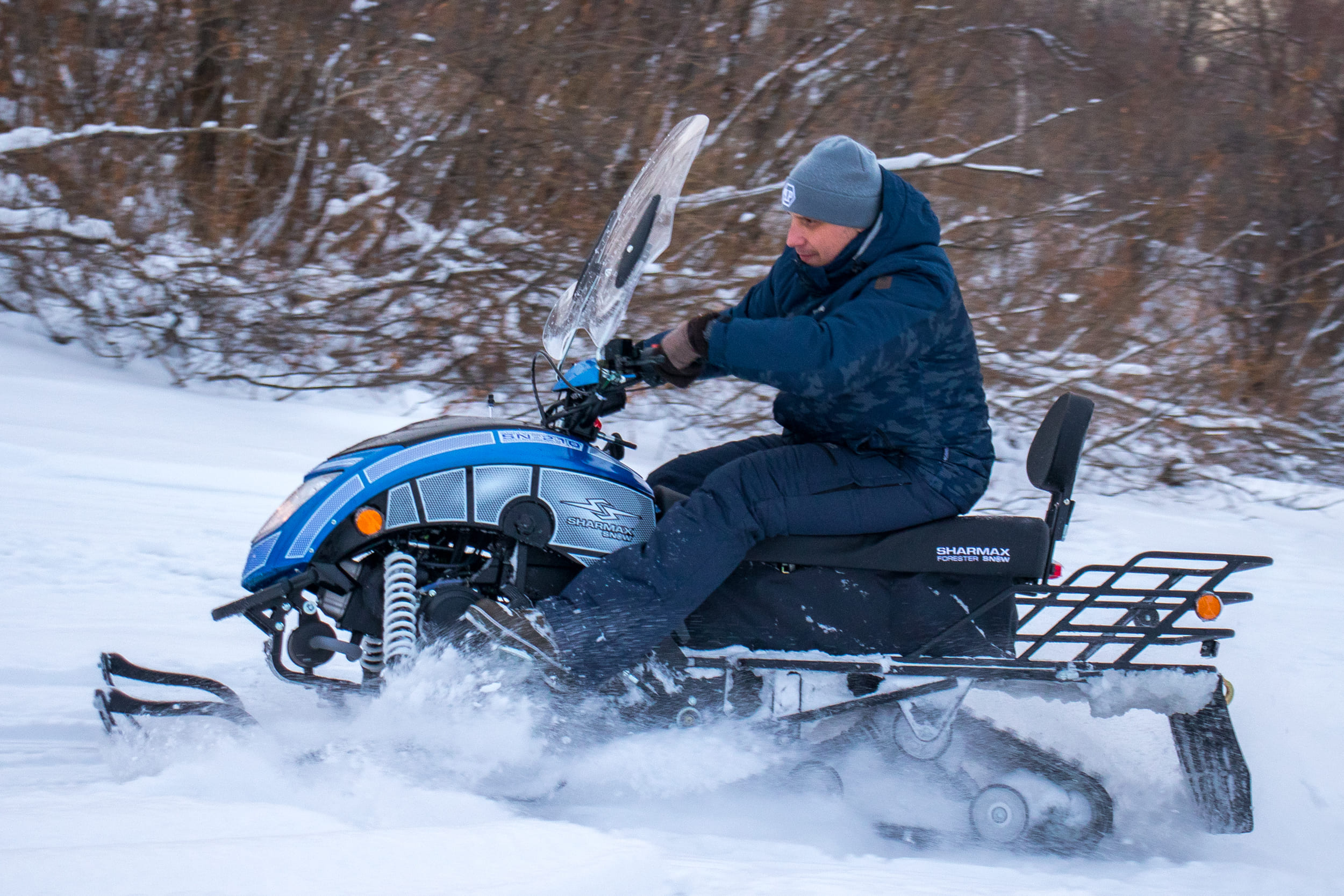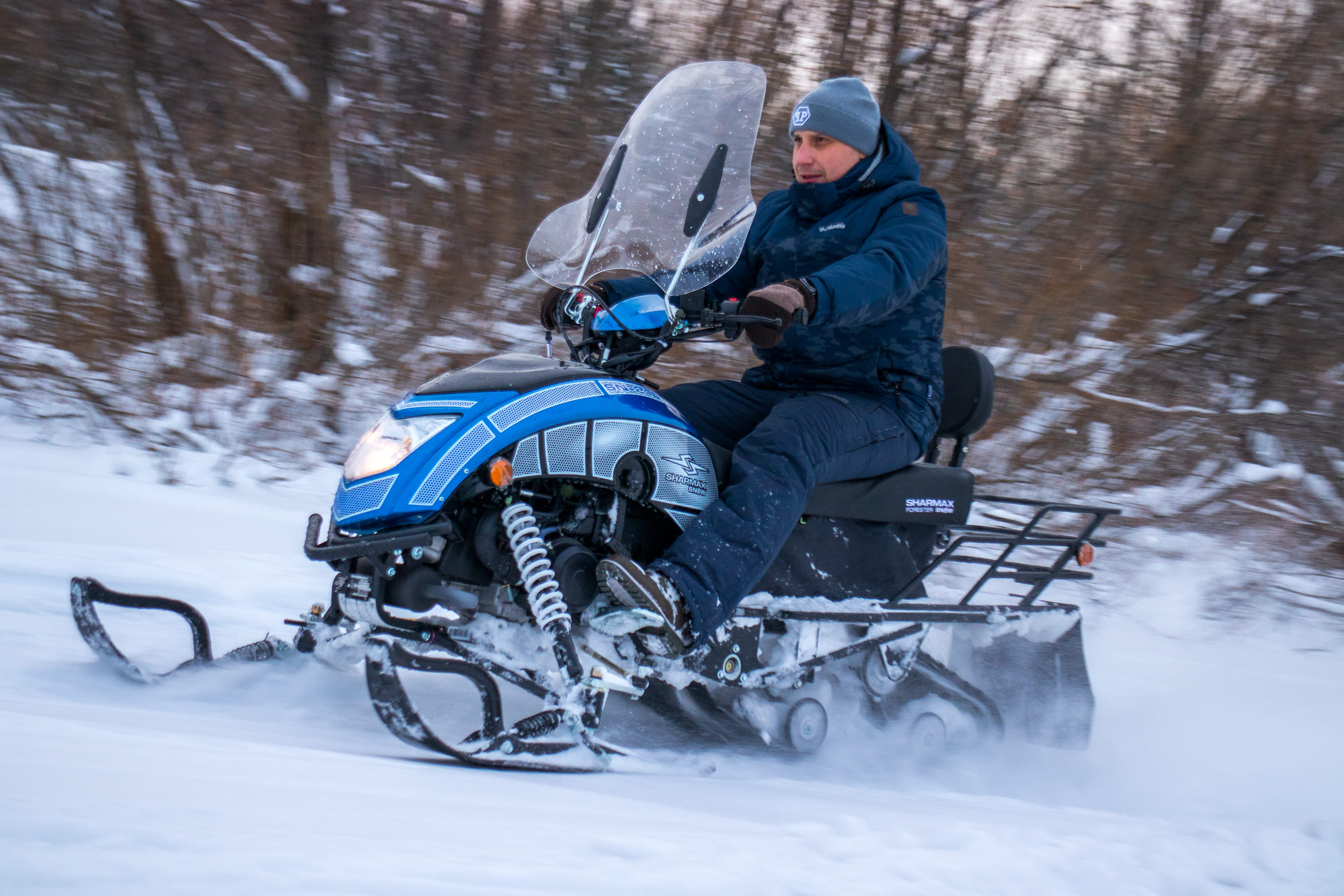 Снегоход Sharmax очень маневренный и довольно простой в управлении. С ним справится даже новичок.