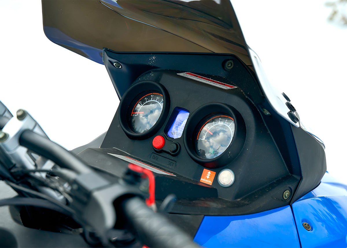 Sharmax SN-500 EFI оснащён яркой двойной фарой, что обеспечивает впечатляющий уровень освещённости в тёмное время суток. Двухрычажная передняя подвеска с поворотным кулаком обеспечивает отличную управляемость.