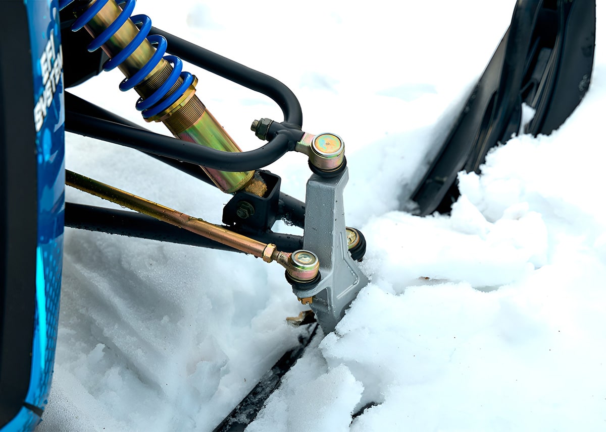 Передняя двухрычажная подвеска с поворотным рычагом повышает комфорт управления на любых скоростях. Задняя подвеска усилена для российских условий и прошла тесты в наших лесах. Ей не страшны большие нагрузки и перегруз самого снегохода.