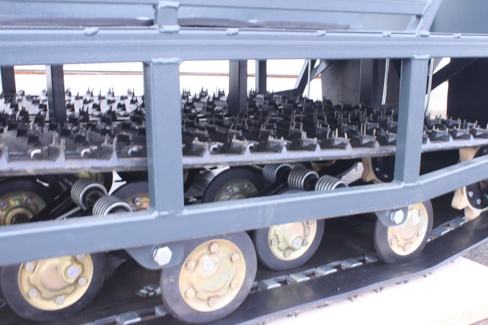 Снегоход обладает модернизированной короткой рамой и открытыми фермами по центру и по бокам. Это техническое решение упрощает процесс самоочищения ходовой части снегохода. Такой дизайн обеспечивает легкость в наблюдении за состоянием гусениц и элементов подвески. Это особенно полезно для рыбаков и охотников, которым приходится проезжать через сильно заснеженные местности.