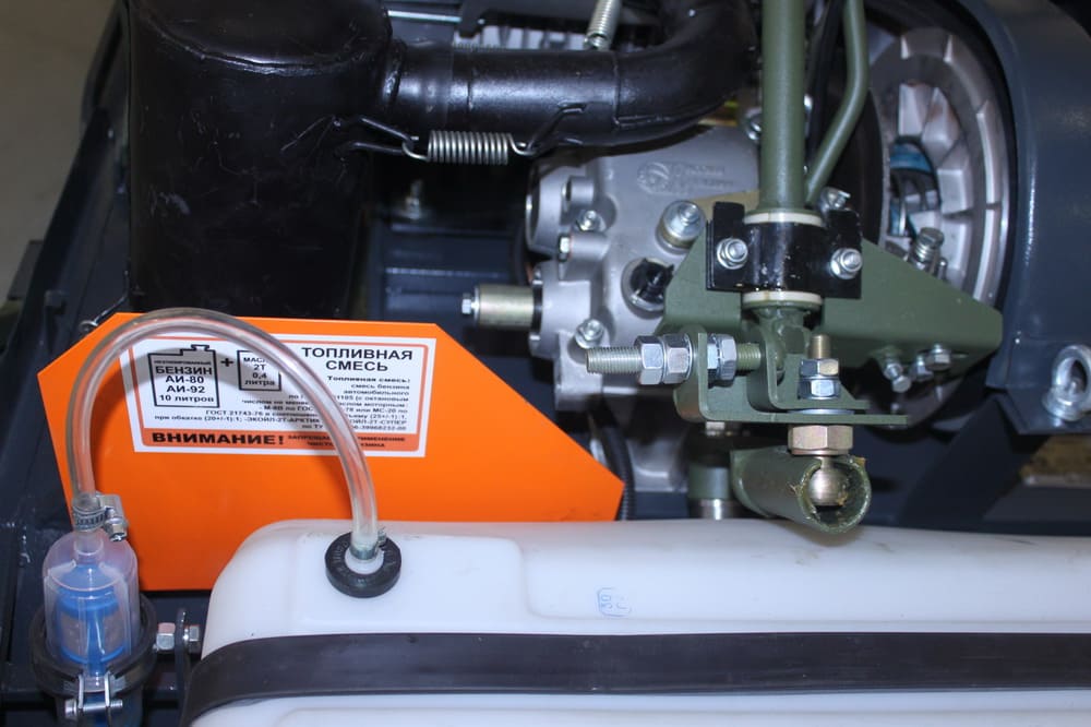 Транспорт оснащен 2-х тактным мотором объемом 635 куб.см и мощностью 34 л.с., которого достаточно для успешного выполнения всех задач перед этой техникой. Мотор способен развить скорость в среднем до 60 км/ч.