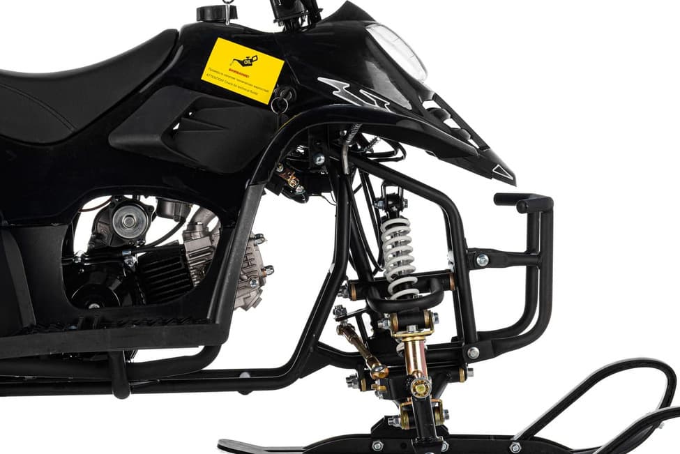 В снегоцикле Тigеr Univеrsаl 150 используются тормоза двух типов: барабанные — спереди, дисковые с гидравлической системой — сзади. Благодаря этому у квадроцикла минимальный тормозной путь даже на высоких скоростях.