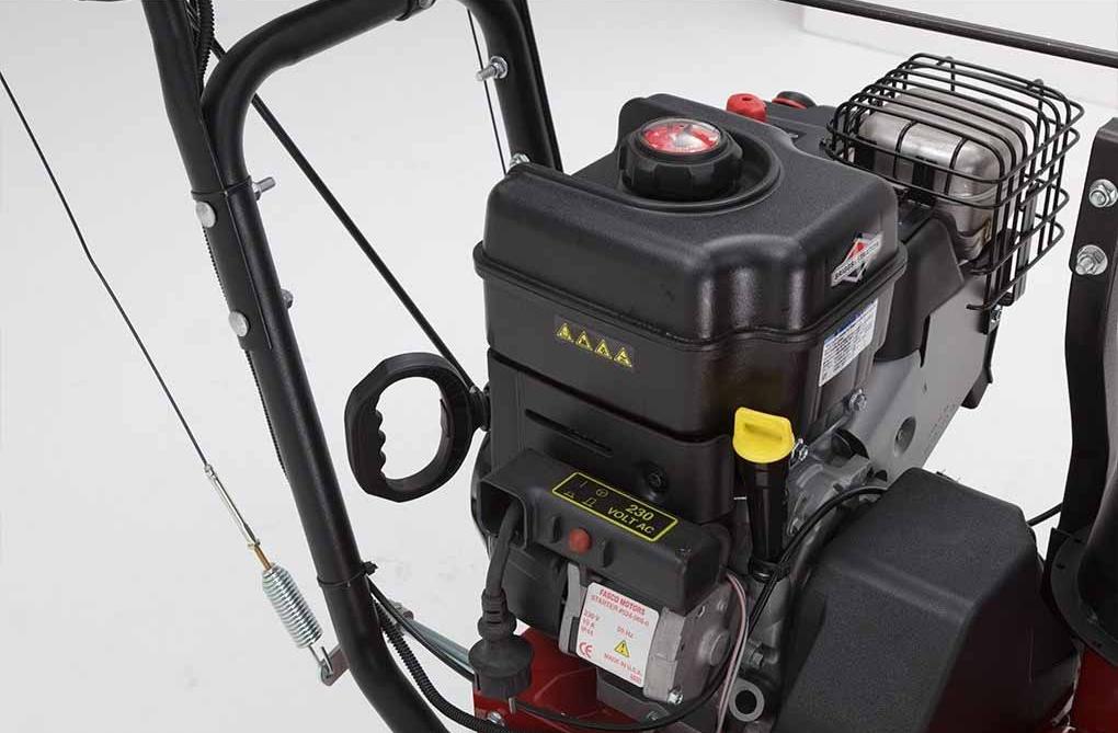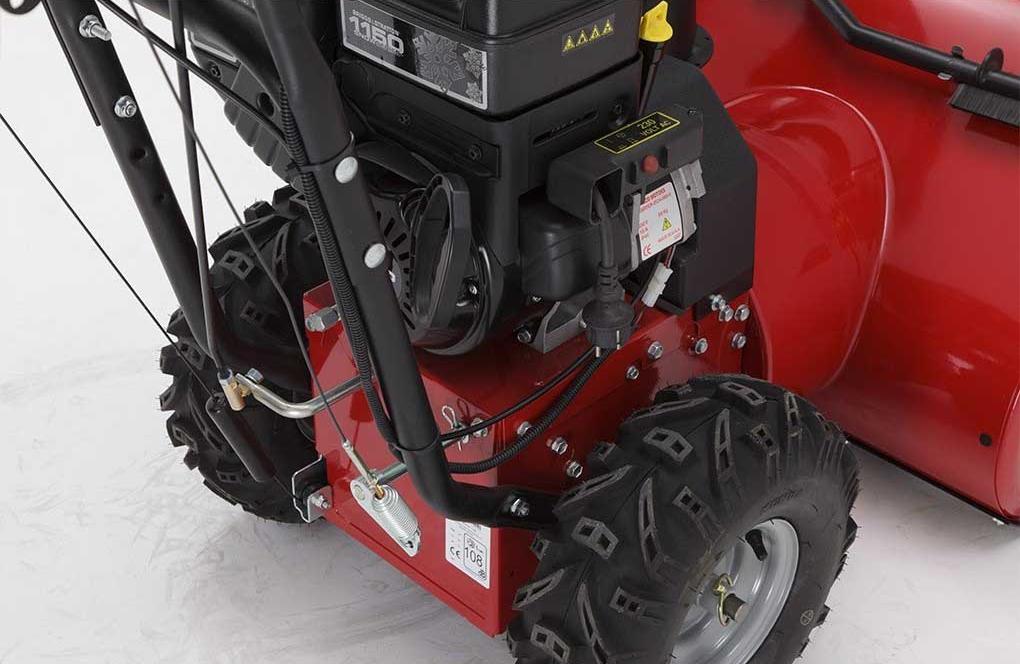 - Электростартер. Напряжение до 220В оснащает снегоуборщик быстрым запуском в любую погоду.