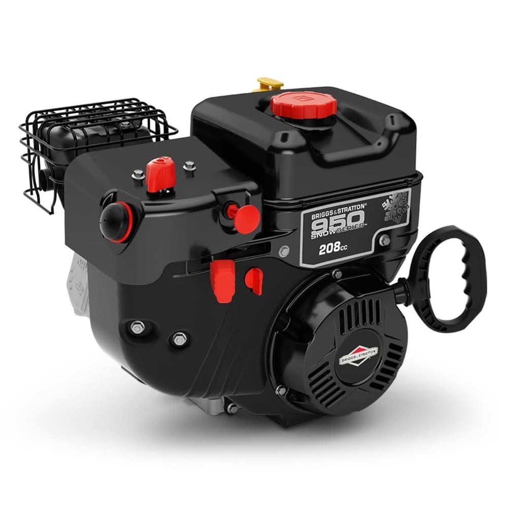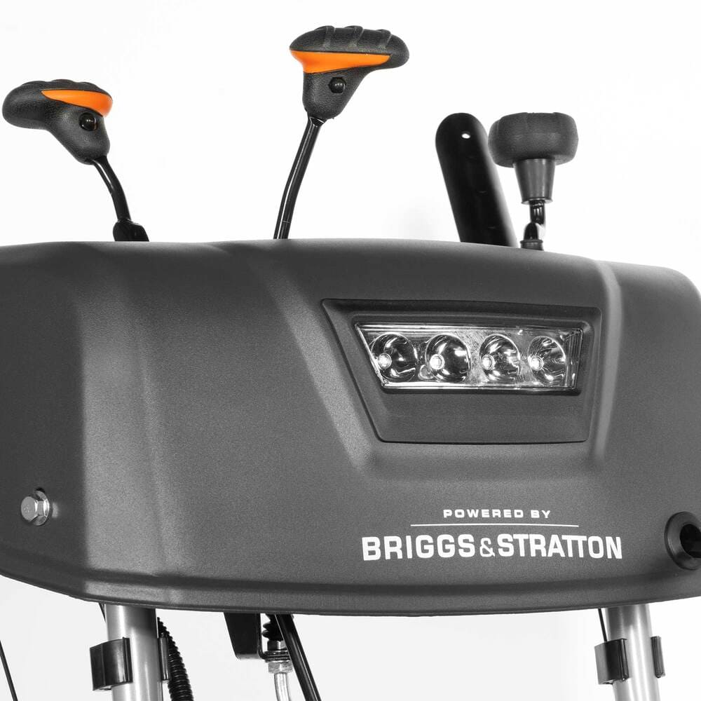 Снегоуборочная машина оснащена бензиновым двигателем Briggs&Stratton мощностью 7 л.с. и объемом 208 куб. см с воздушным охлаждением. Запуск мотора можно производить как с ручного стартера, так и с электростартера, максимальных оборотов двигатель достигает 3600.