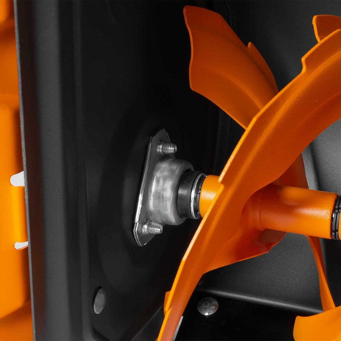 Выброс снега в нужном направлении. Конструкция оснащена желобом, имеющим возможность поворота на 180°.