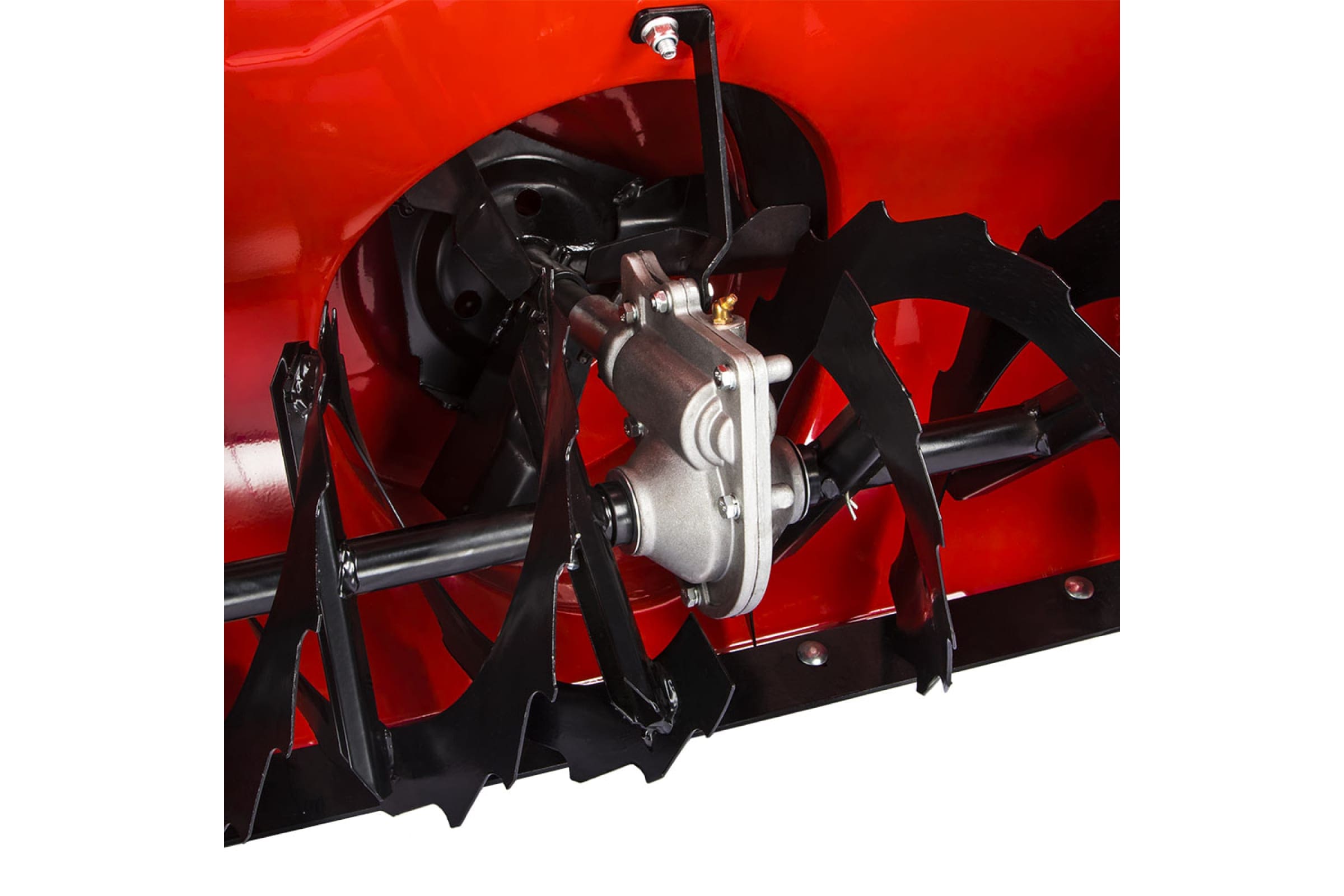 - Стальной шнек. Снегоуборочная машина оснащена специальным шнеком с зубчиками, который позволяет справиться даже с залежавшимся снегом на большой и маленькой территории. Обладает многоступенчатой системой очистки.
