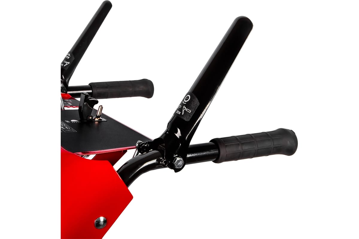 - ● удобная рукоятка: расположена за желобом, что облегчает подъем и перемещение снегоуборщика;