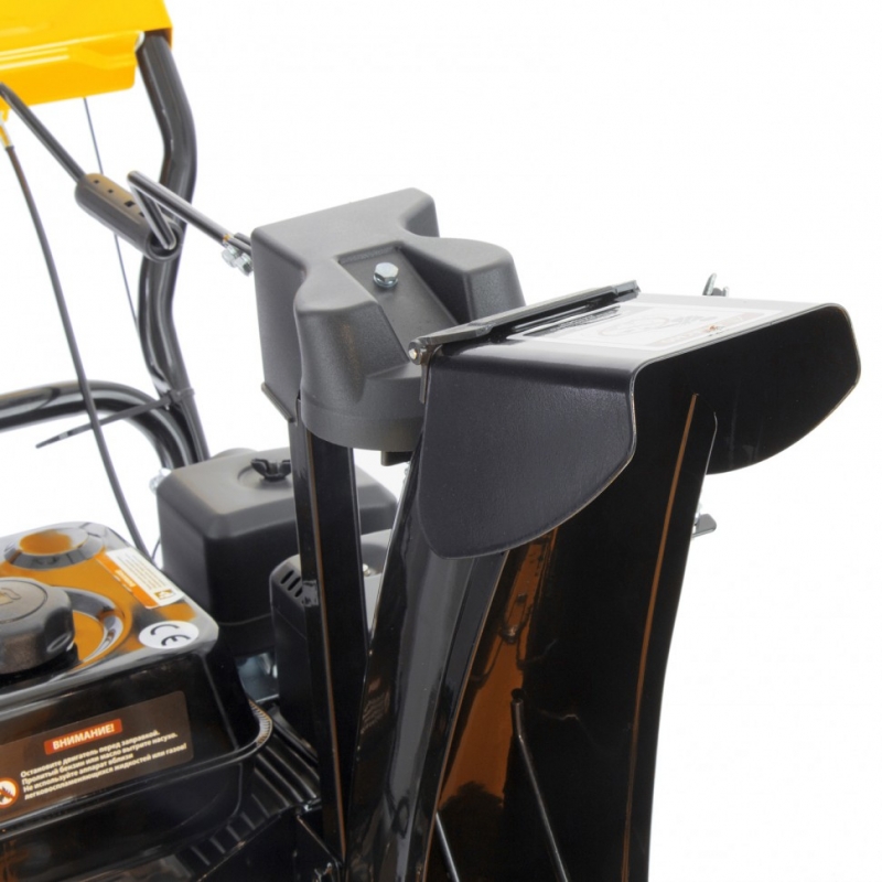 - Регулировка направления и дальности выброса снега повышает удобство эксплуатации и эффективность рабочего процесса.