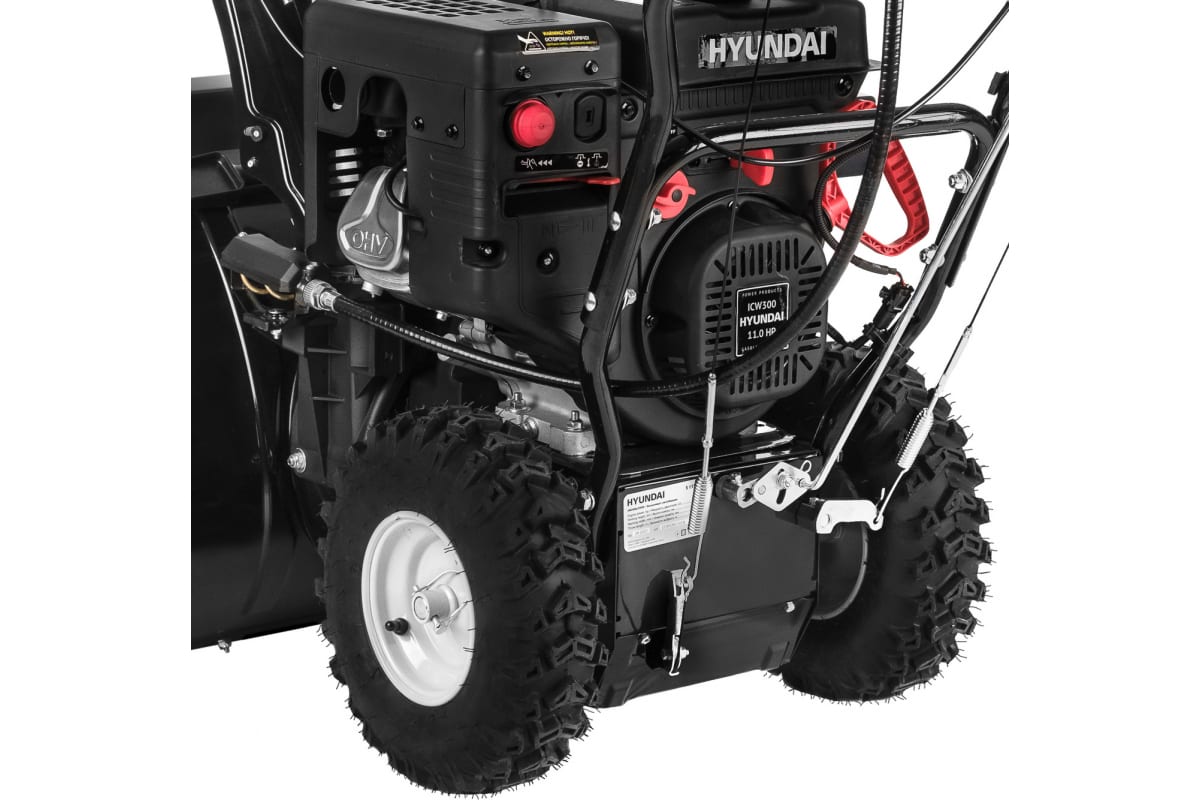 Снегоуборочная машина Хендай оснащена бензиновым двигателем с воздушным охлаждением мощностью 11 л.с. и объемом 375 куб. см. Двигатели ICW400 в моделях Hyundai обеспечивают запуск при температуре до -30 °С, имеют ресурс более 20 моточасов, отличаются низким уровнем шума и расходом топлива АИ-92.