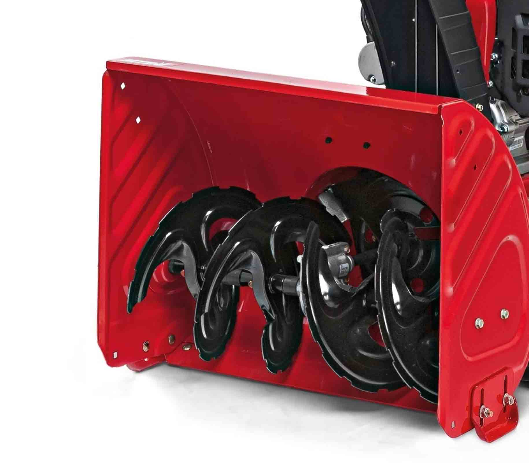 Снегоуборочная машина ME 66 T оснащена редуктором шнека, отличается усиленным литым корпусом и прецизионными узлами червячной передачи. Шнек, выполненный из стали большой толщины и снабженный зубцами, обеспечивает более эффективное измельчение наледи и слежавшегося снега. Шнек Xtreme-Auger, состоит из 4-х независимых друг от друга спиралей с увеличенной рабочей поверхностью, что обеспечивает большую производительность и позволяет продолжать работу даже при срезании “пальца” одного из шнеков.