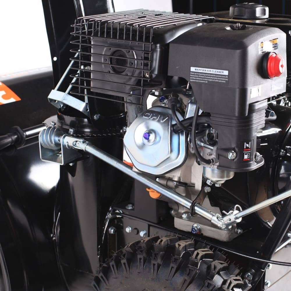 Снегоуборщик мощностью 8 л.с. имеет все необходимое для комфортной работы: электростартер для запуска в самые сильные морозы, фара для работы в темное время суток и большой диапазон регулировок скоростей, который позволит подстроиться под различные условия работы.