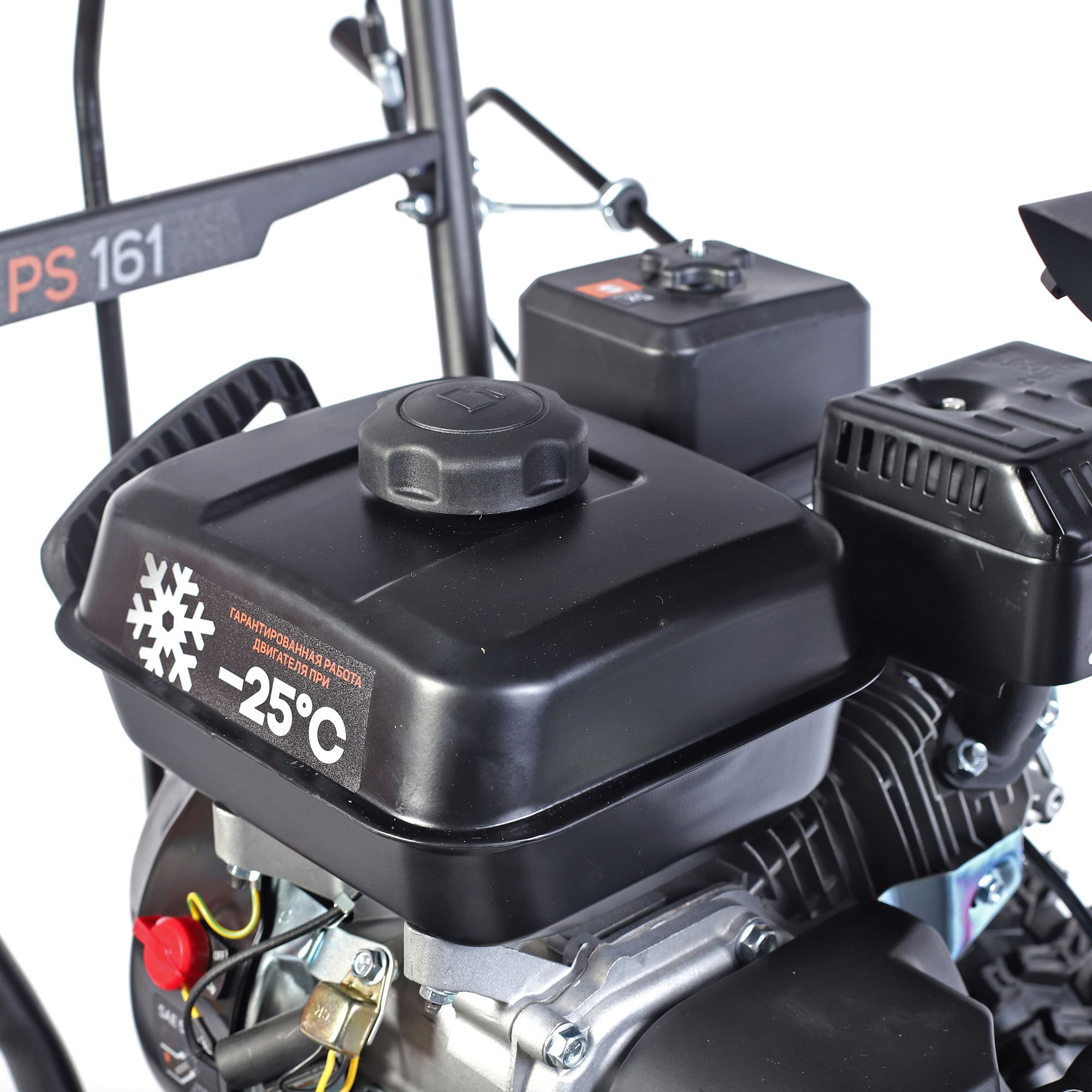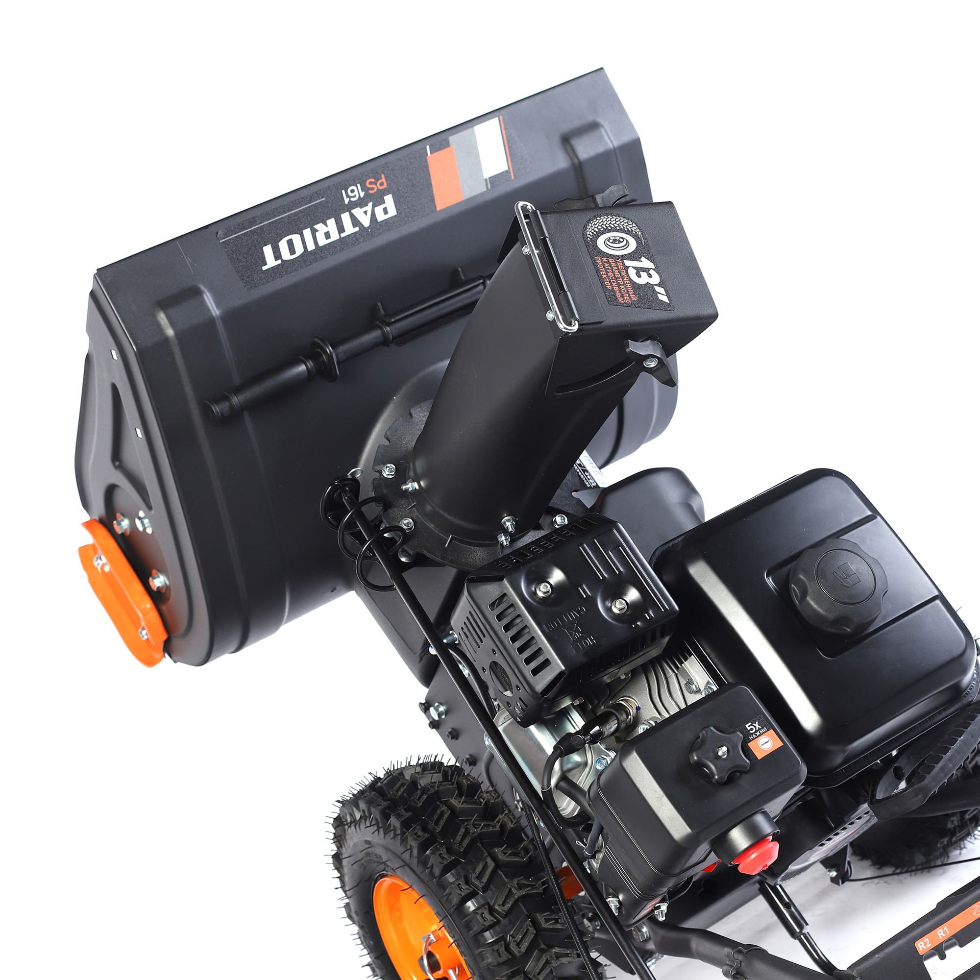 Снегоуборщик данной модели оснащен бензиновым двигателем Patriot мощностью 7 л.с. и объемом 212 кубов, защищенным от сильных морозов. Такой мощности достаточно для того, чтобы тщательно убрать небольшие участки от снега и даже льда за короткое время.