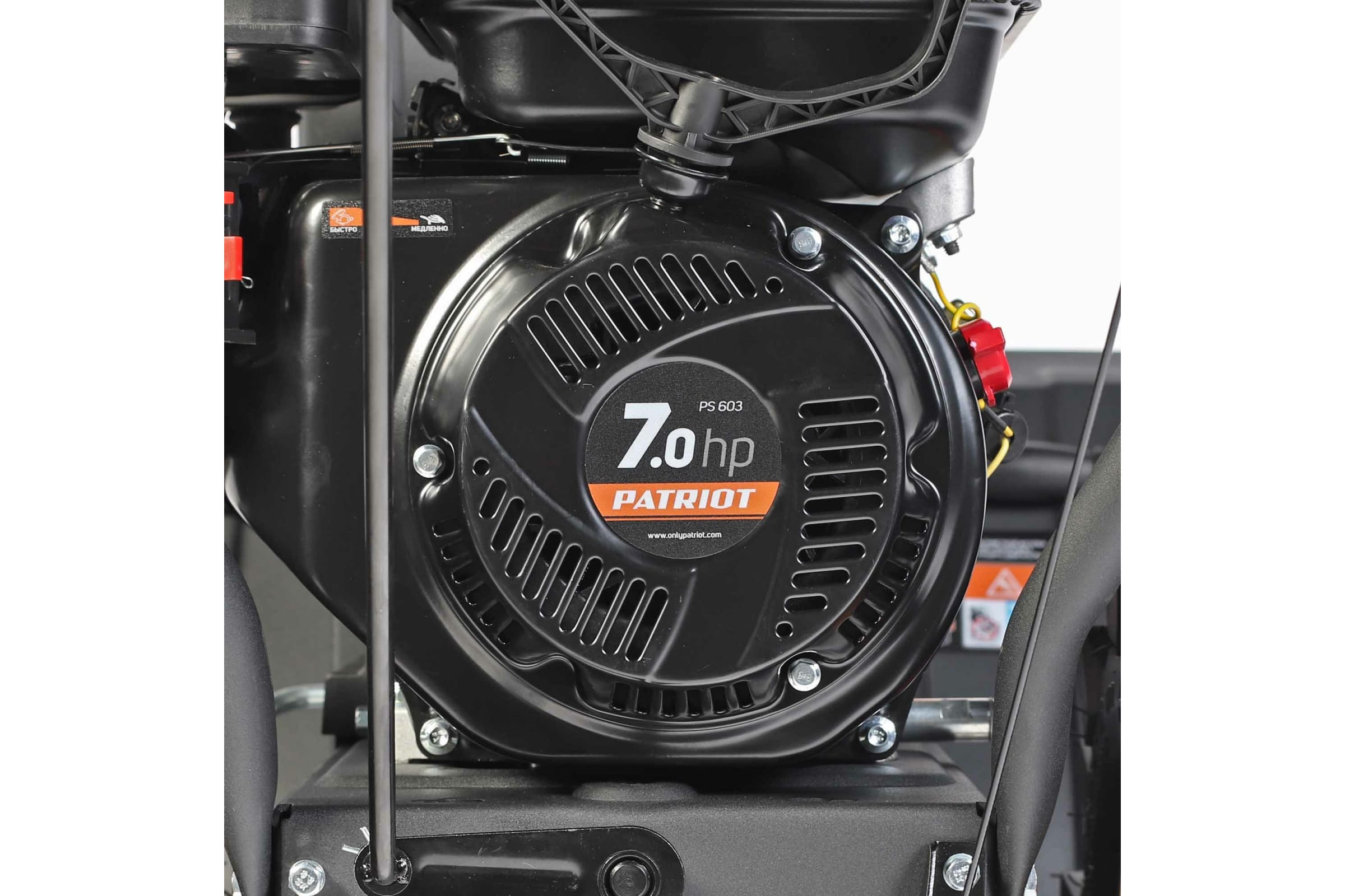 - Снегоуборочная техника Patriot PS 603E оснащена четырехтактным двигателем, который имеет мощность 6,5 л.с.