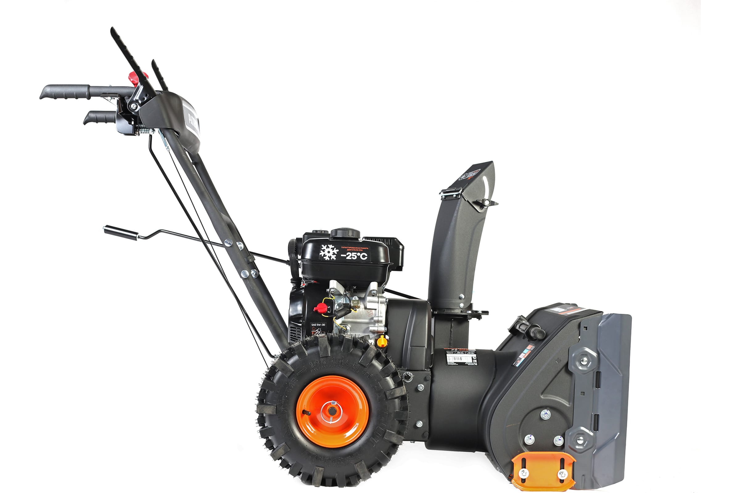 - Положение шнека для выброса снега регулируется.