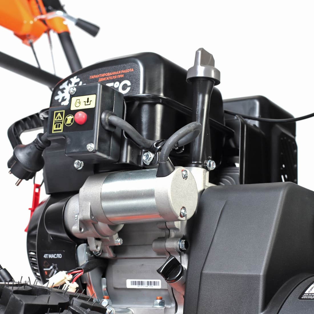 Снегоуборщик Патриот Сибирь оснащен бензиновым двигателем мощностью 11 л.с. и объемом 302 кубов, защищенным от даже сильных морозов. Двигатель защищен от сильных морозов до -35 градусов, а функция электростартера позволяет запустить его по нажатию одной кнопки.