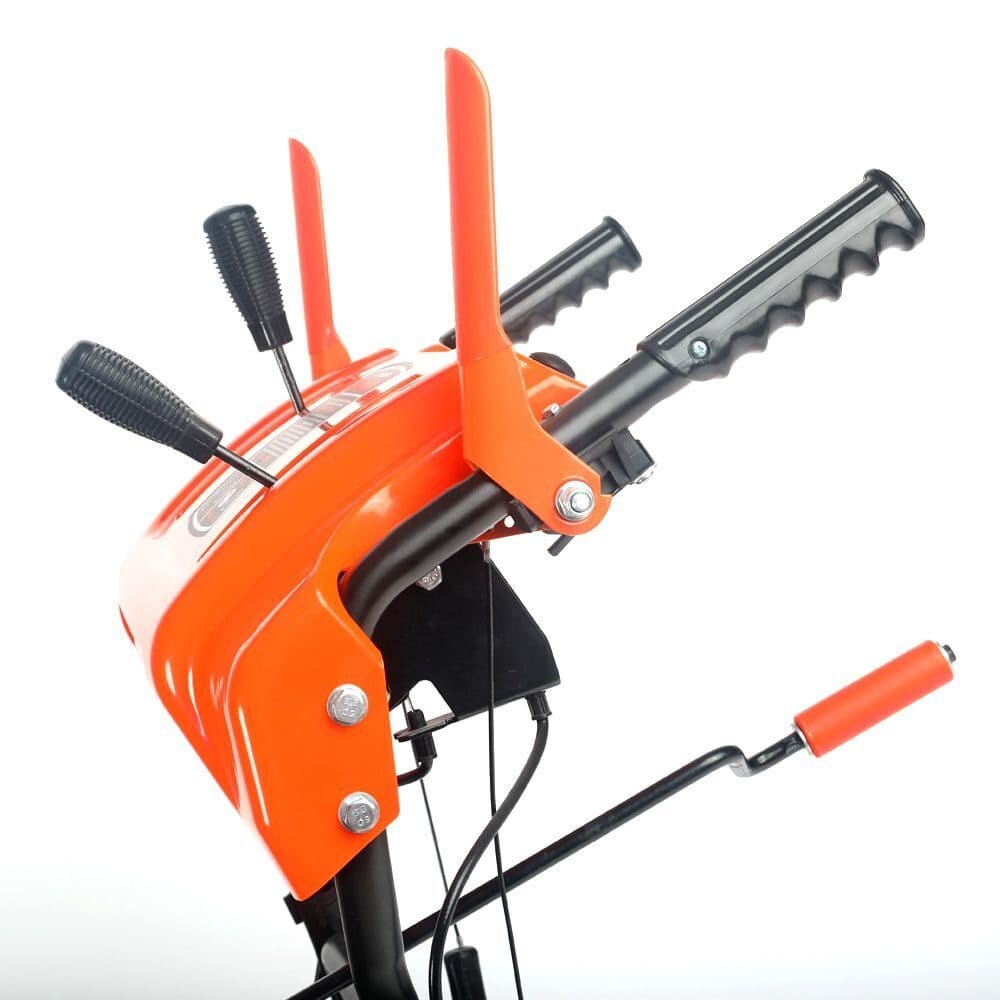 Снегоуборщик мощностью 6,5л.с. имеет все необходимое для комфортной работы: электростартер для запуска в самые сильные морозы, фара для работы в темное время суток и большой диапазон регулировок скоростей, который позволит подстроиться под различные условия работы. В конструкции снегоуборщика используются только подшипники, а не втулки. Шестерня редуктора шнека выполнена из бронзы, что в десятки раз увеличивает ресурс снегоуборщика. На заводе производится регулировка и обкатка каждой единицы техники в собранном состоянии.