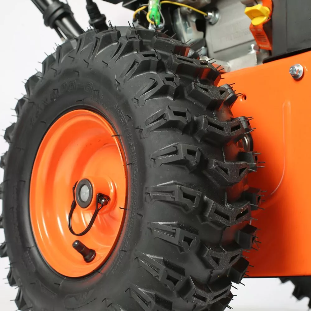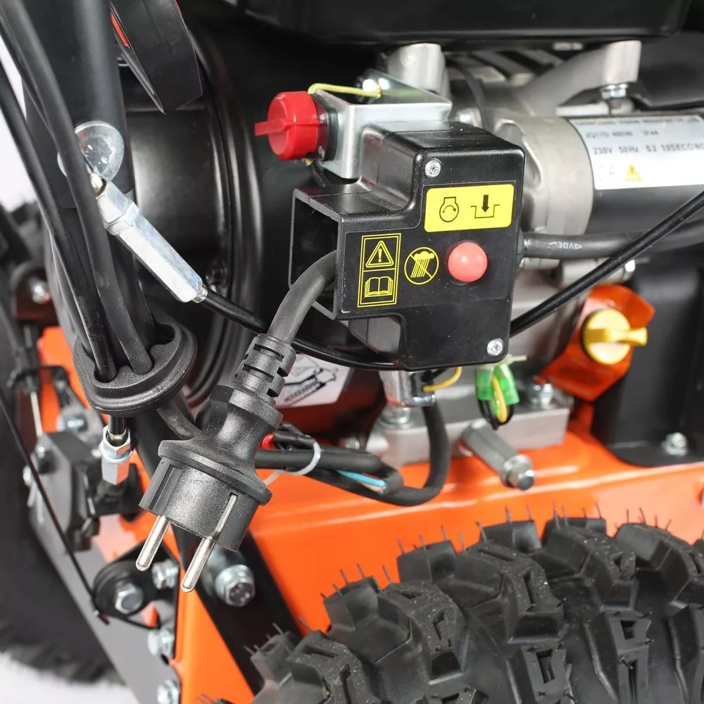 Снегоуборщик мощностью 6,5л.с. имеет все необходимое для комфортной работы: электростартер для запуска в самые сильные морозы, фара для работы в темное время суток и большой диапазон регулировок скоростей, который позволит подстроиться под различные условия работы. В конструкции снегоуборщика используются только подшипники, а не втулки. Шестерня редуктора шнека выполнена из бронзы, что в десятки раз увеличивает ресурс снегоуборщика. На заводе производится регулировка и обкатка каждой единицы техники в собранном состоянии.