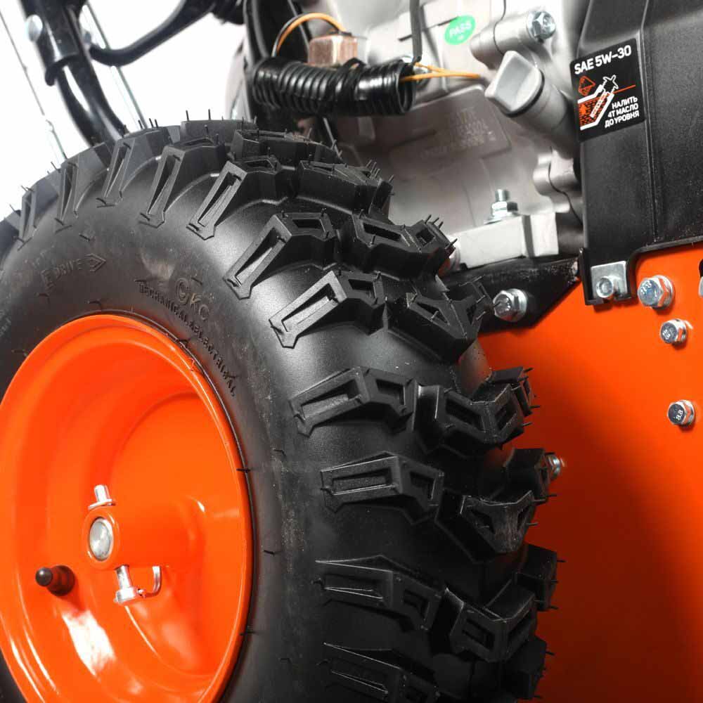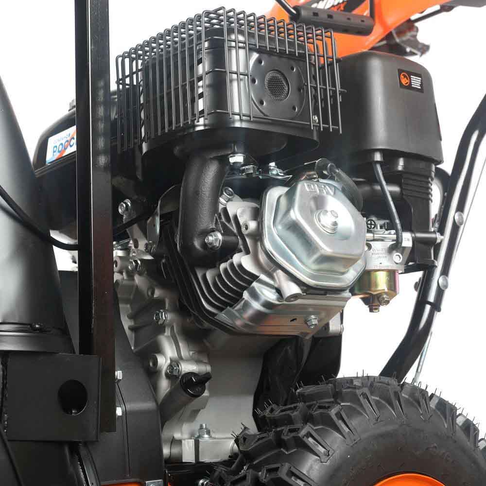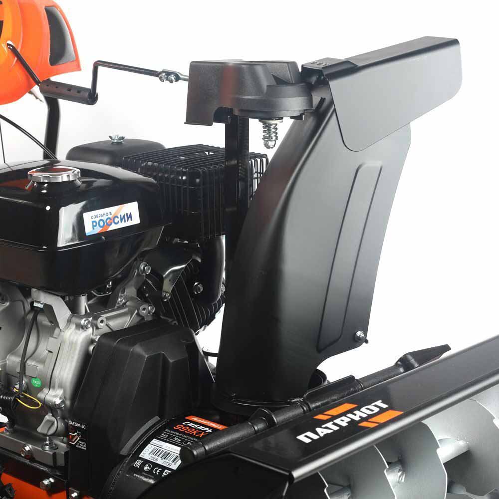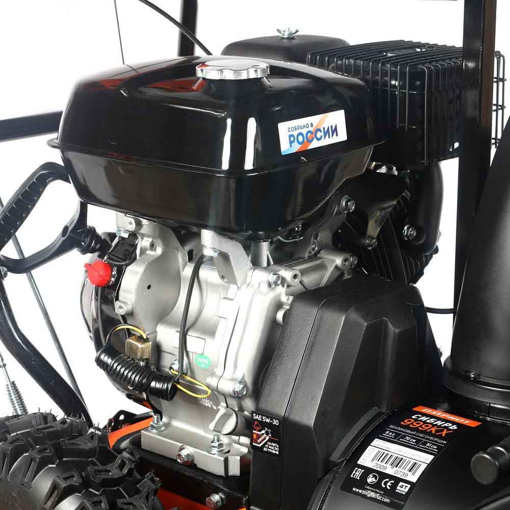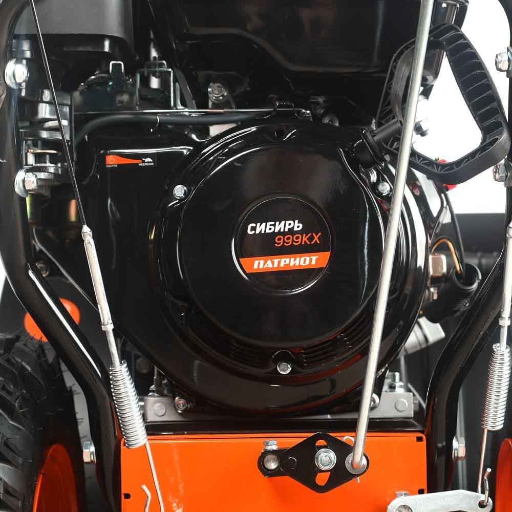 Производительный снегоуборщик PATRIOT Сибирь 999 ЕKX оснащается бензиновым 4-хтактным двигателем с наибольшей мощностью 9 л.с. Двигатель имеет как ручной, так и электростартер, чтобы вы смогли запустить его в любых погодных условиях. Благодаря наличию фар вы сможете убирать снег с помощью этого агрегата даже в темное время суток.