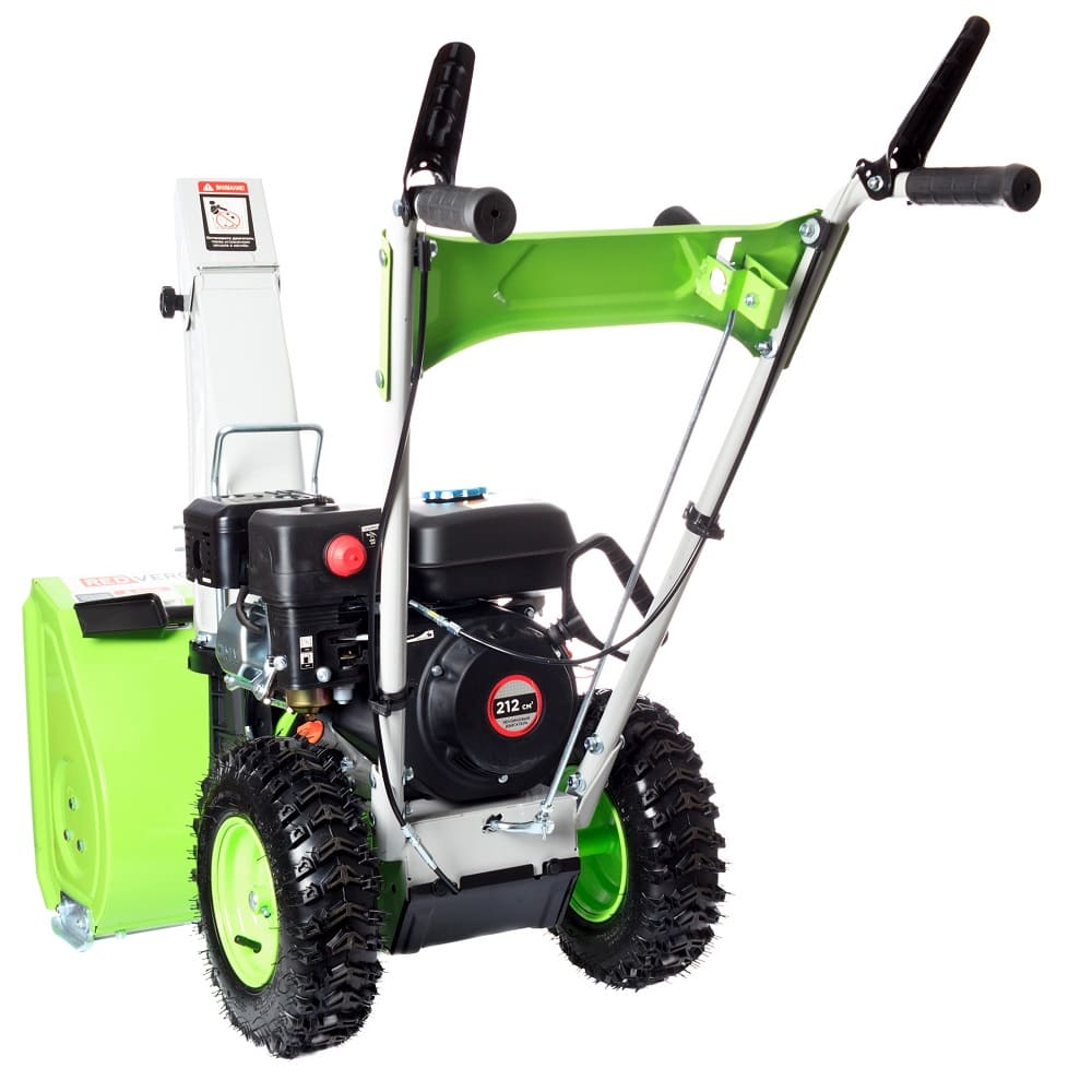 Самоходный снегоуборщик РедВерг оснащен бензиновым двигателем с воздушным охлаждением мощностью 7 лошадиных сил. Вместе с колесами с глубоким протектором, снегоуборочная техника легко перемещается, так как колеса предотвращают пробуксовку на обледенелых участках.