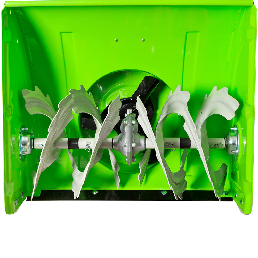 - ● металлический поворотный жёлоб выброса снега с подпружиненным рассекателем;