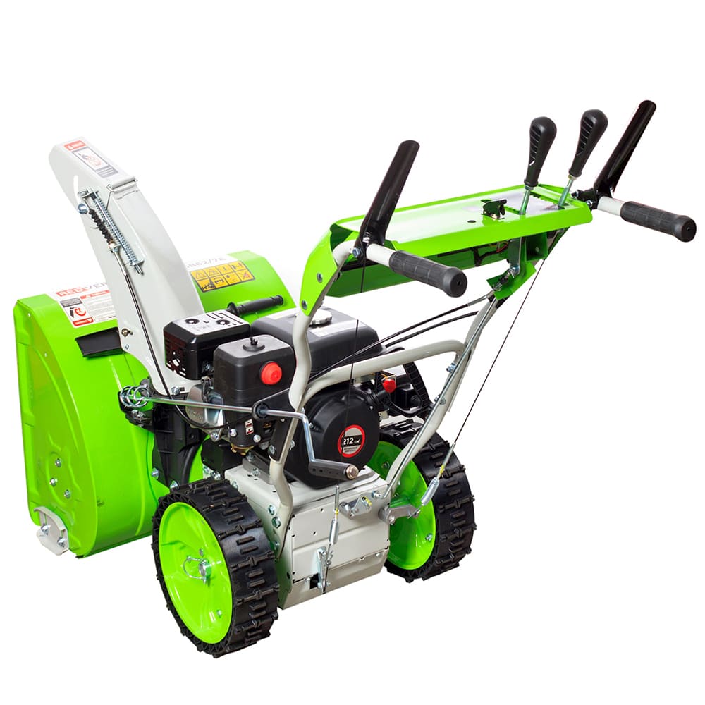 Самоходный снегоуборщик РедВерг оснащен бензиновым двигателем с воздушным охлаждением мощностью 7 лошадиных сил. Вместе с колесами с глубоким протектором, снегоуборочная техника легко перемещается, так как колеса предотвращают пробуксовку на обледенелых участках. Модель также оснащена датчиком уровня масла.