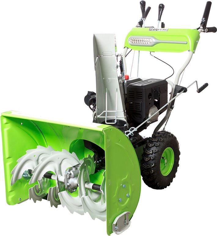 Самоходный снегоуборщик РедВерг оснащен бензиновым двигателем с воздушным охлаждением мощностью 9 лошадиных сил. Вместе с колесами с глубоким протектором, снегоуборочная техника легко перемещается, так как колеса предотвращают пробуксовку на обледенелых участках.