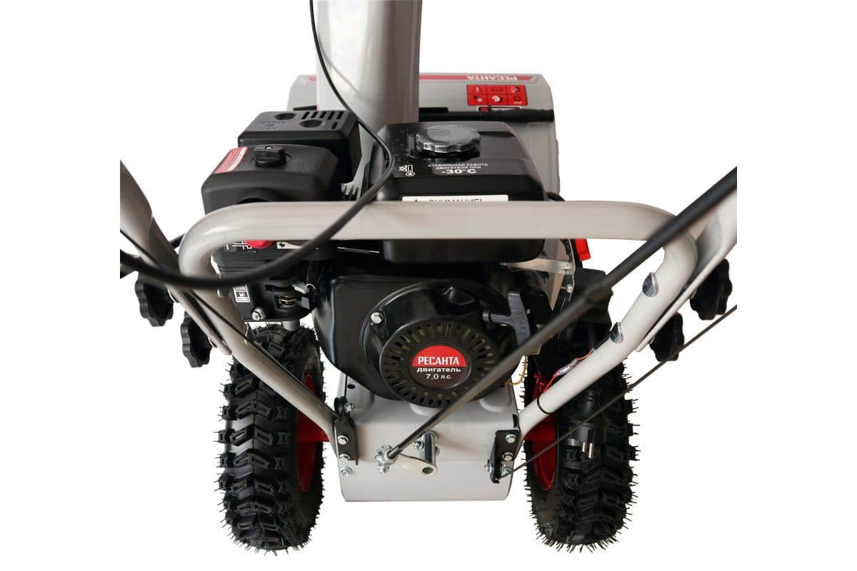 Снегоуборочная техника Ресанта оснащена бензиновым двигателем с воздушным охлаждением, а также мощностью 7 л.с. и объемом 196 кубов. Мотор защищен от сильных морозов и отличается моментальным холодным запуском.