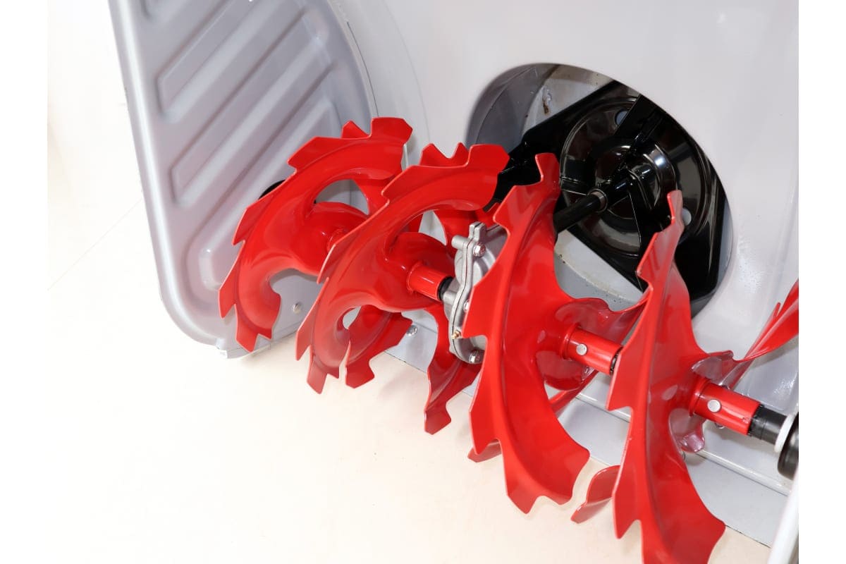 Важной особенности данной модели является металлический шнек, который способен измельчить не только залежавшийся снег, но и даже толстый слой льда. Кроме того, машина оснащена электростартером, поэтому запустить устройство не составит труда даже в мороз. Рабочая система включает: