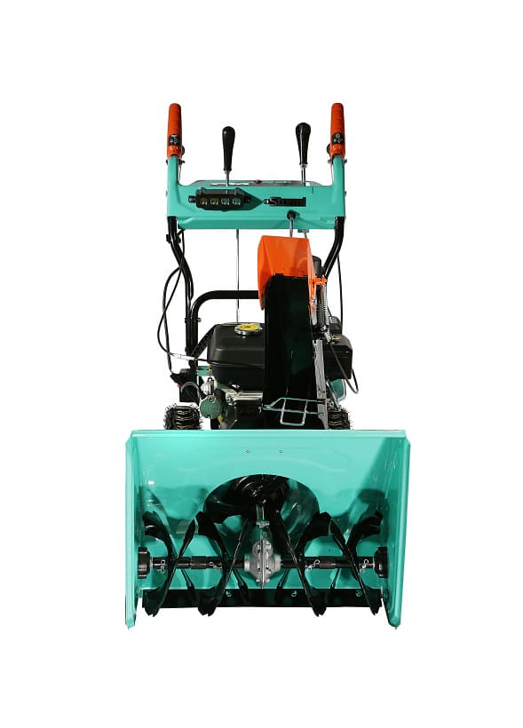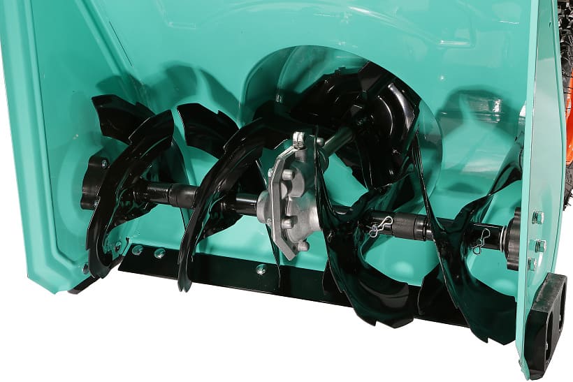 - Агрессивные шнеки диаметром 250 мм легко справляются со слежавшимся снегом и настом.