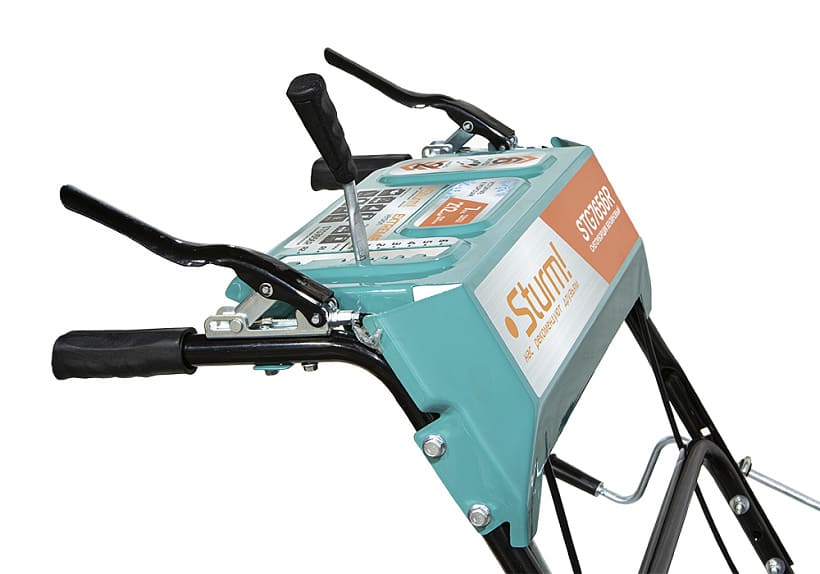 Бензиновый снегоуборщик Sturm! STG7656R это самоходная двухступенчатая снегоуборочная машина оснащена зимним вариантом надежного четырехтактного бензинового двигателя модели 170F. Система управления двигателем обеспечивает его работу в оптимальном диапазоне максимального крутящего момента, что даёт хорошую энерговооружённость для выполнения тяжёлых работ. "Сухая" гильза цилиндра двигателя из высокопрочного материала обеспечивает долговечность цилиндропоршневой группы. Зазубренный шнек первой ступени успешно измельчает слежавшийся снег и может справиться даже с настом толщиной до 2 см. Высокооборотистая вторая ступень снегоуборочного агрегата отбрасывает снег на расстояние до 12 м. Широкие колеса с развитым анти-снежным протектором позволяют уверенно двигаться по рыхлому снегу.