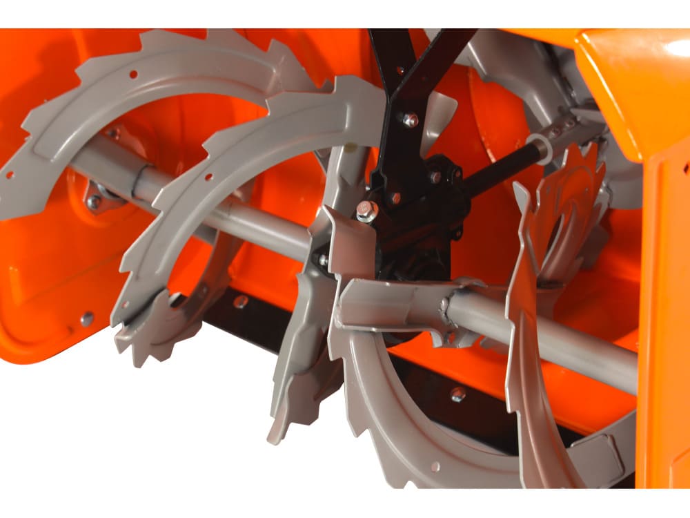 Техника оснащается надежным двигателем LONCIN G250FDS с возможностью запуска вручную либо с помощью электростартера. Двухступенчатый шнек, выполненный из качественной стали, за один проход расчищает 76 см снега. Высота захвата при этом составляет до 54 см. Увеличенное расстояние выброса снега через стальной желоб составляет 15 метров – дальше, чем у других моделей производителя.